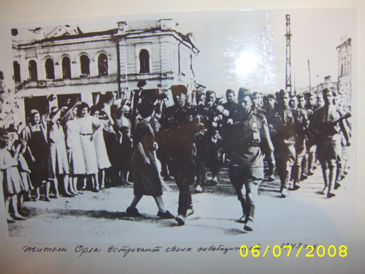 67 лет назад, 5 августа 1943 года, разгромив на Курской дуге гитлеровскую группировку, советские войска вошли в Орел. Это сражение окончательно преломило ход Великой Отечественной войны. Впервые в Москве в ознаменование этой победы прозвучал артиллерийский салют. Военный фотокорреспондент запечатлел миг, когда в освобожденный город встречал своих солдат, и много лет спустя на фото в учебнике истории оренбургский ветеран Петр Близнюк узнал себя и своих боевых товарищей.