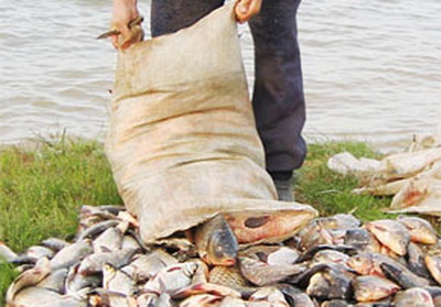 Рано утром на Ириклинском водохранилище  двое неработающих жителей Новотроицка с помощью резиновой лодки «нырок» и трех сетей выловили рыбу.