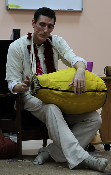 В прошедшие выходные в Оренбурге побывал всемирно известный музыкант в третьем поколении Питер Ханкинсон (Садху Прия Дас). Он рассказал всем желающим о секретах игры на самом мистическом барабане Индии – мриданге. Садху Прия показал, как нужно правильно держать барабан и как можно извлечь из него звуки, которых существует чуть более сотни видов.