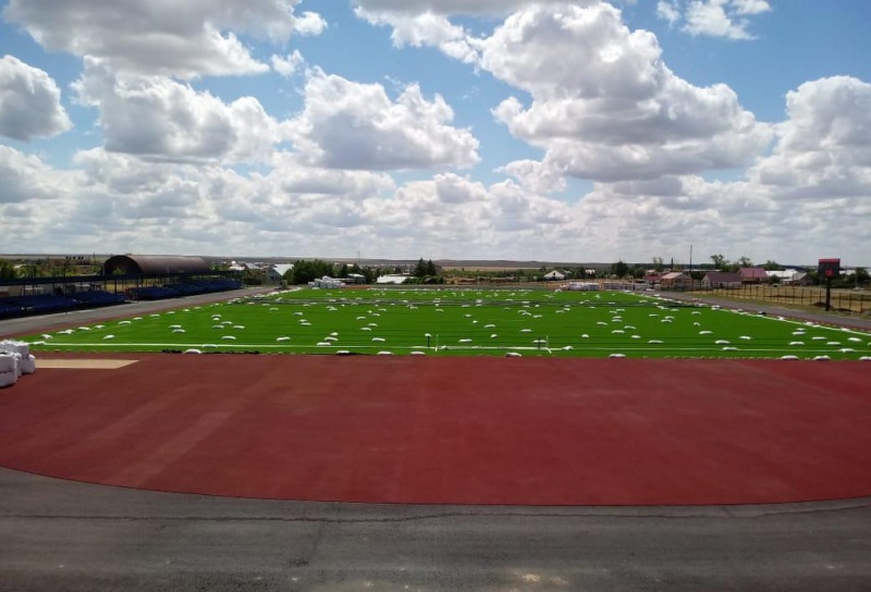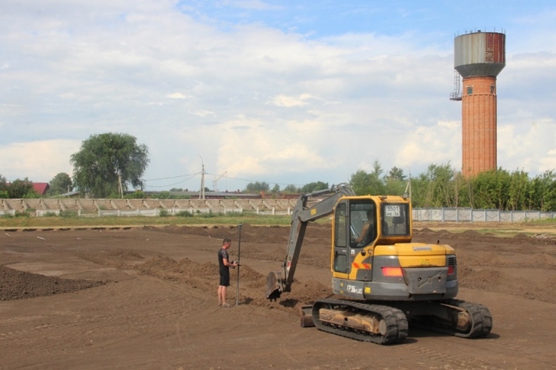 Обустройство игрового поля и легкоатлетических треков на центральном стадионе поселка